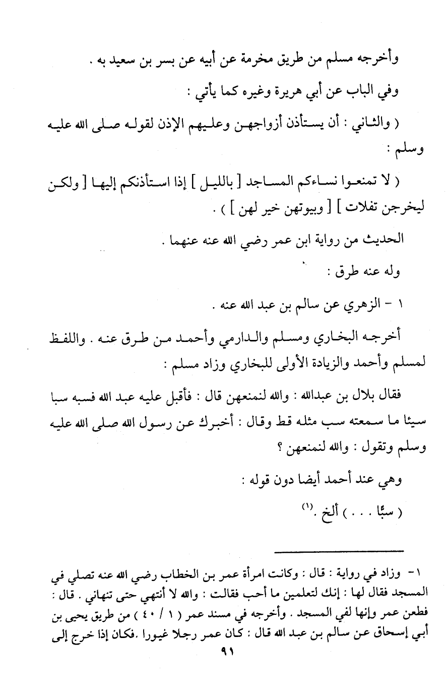 (لا تمنعوا نساءكم المساجد [بالليل] إذا استأذنكم إليها [ولكن ليخرجن تفلات] [وبيوتهن خير لهن]).