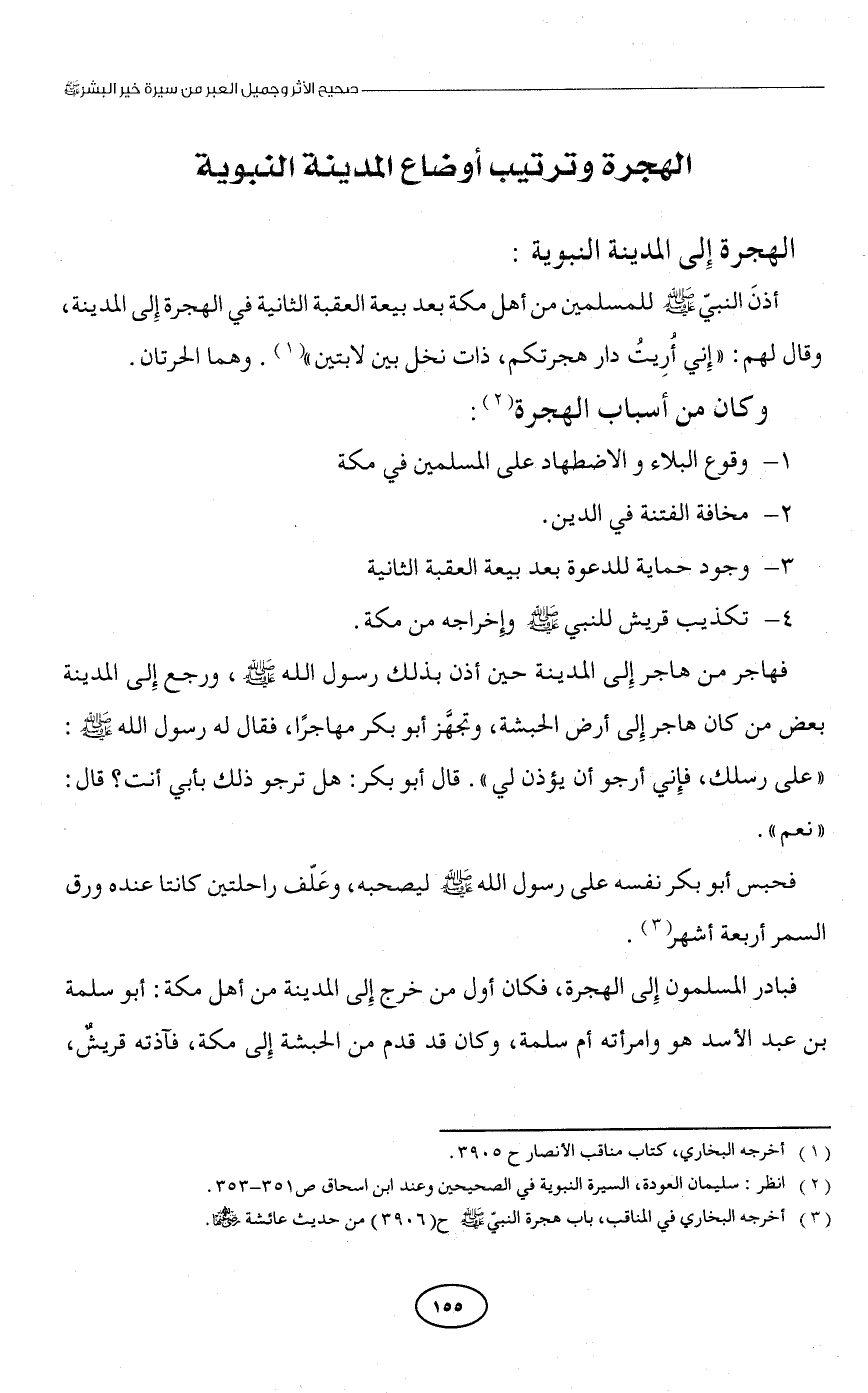 (¬3) أخرجه البخاري في المناقب، باب هجرة النبيّ - صلى الله عليه وسلم - ح (3906) من حديث عائشة - رضي الله عنها -.
