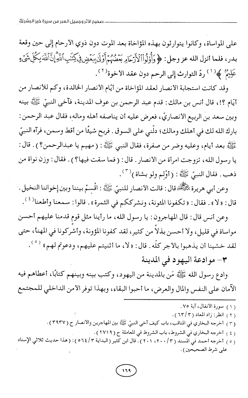 (¬3) أخرجه البخاري في المناقب، باب كيف آخى النبيّ - صلى الله عليه وسلم - بين المهاجرين والأنصار ح (3937).
