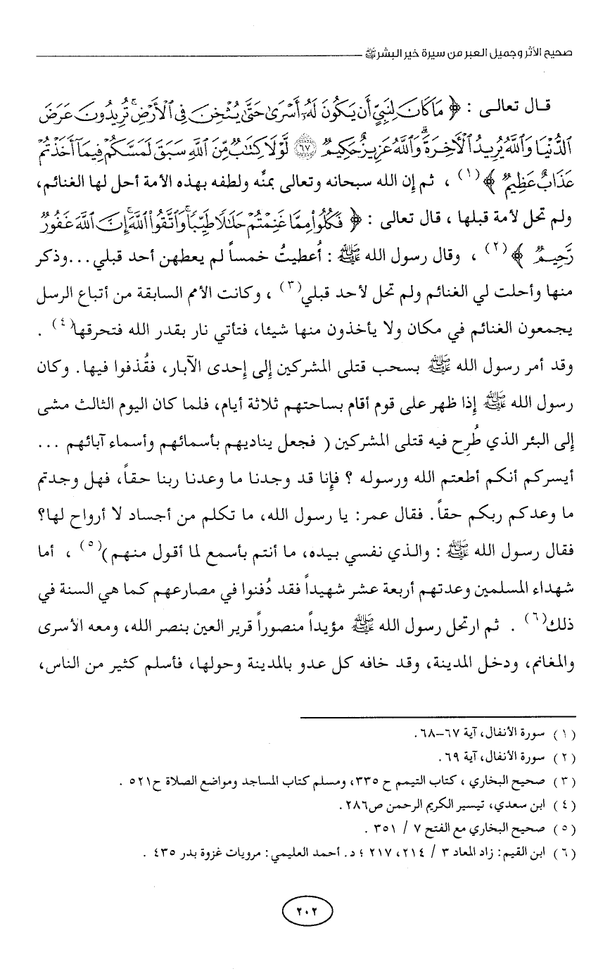 (¬6) ابن القيم: زاد المعاد 3/ 214، 217؛ د. أحمد العليمي: مرويات غزوة بدر 435.