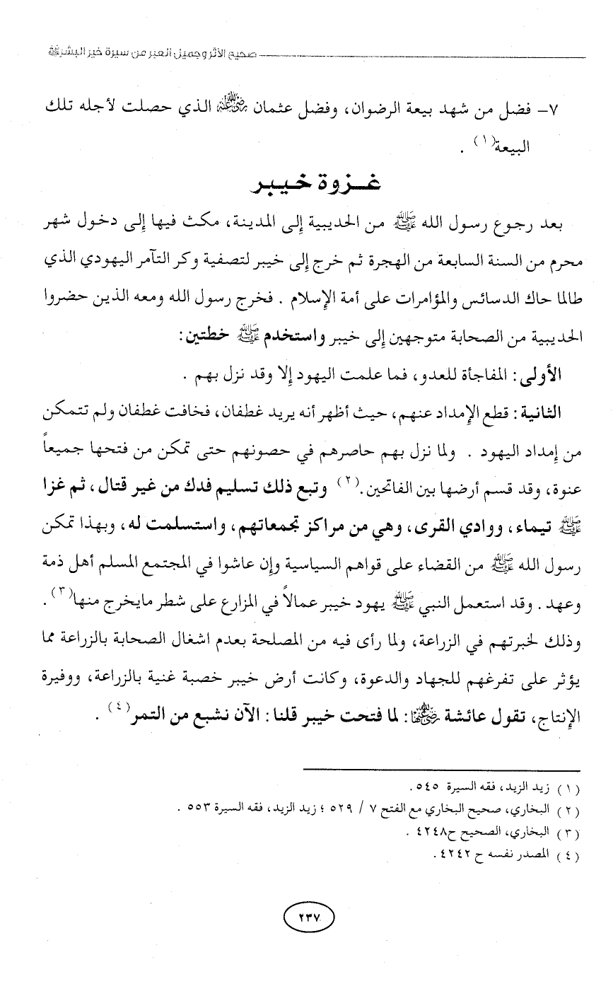 (¬2) البخاري، صحيح البخاري مع الفتح 7/ 529؛ زيد الزيد، فقه السيرة 553.