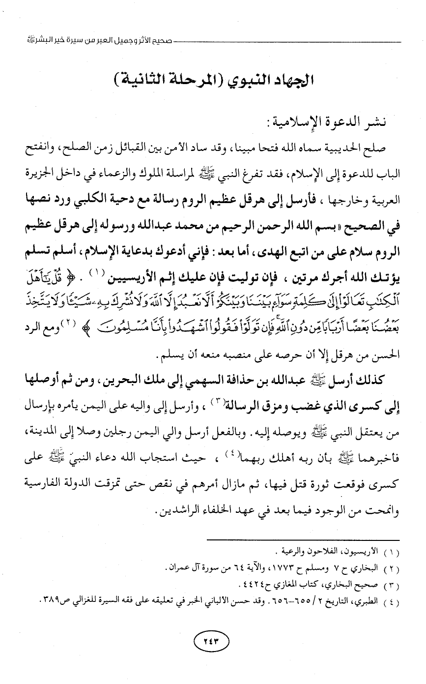 (¬4) الطبري، التاريخ 2/ 655 - 656. وقد حسن الألباني الخبر في تعليقه على فقه السيرة للغزالي ص 389.