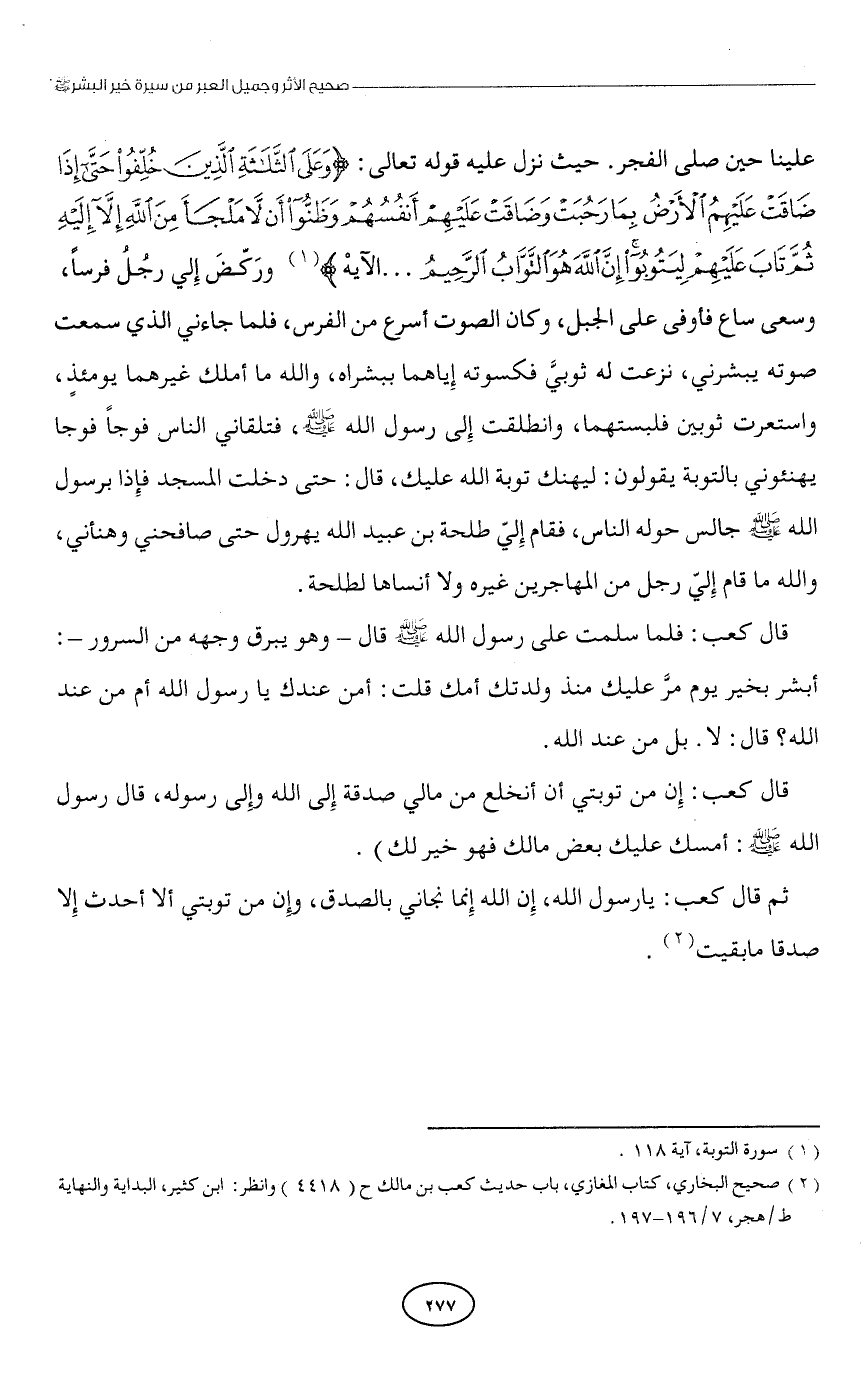 (¬2) صحيح البخاري، كتاب المغازي، باب حديث كعب بن مالك ح (4418) وانظر: ابن كثير، البداية والنهاية ط/ هجر، 7/ 196 - 197.