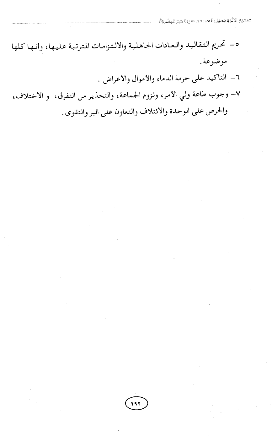 5 - تحريم التقاليد والعادات الجاهلية والالتزامات المترتبة عليها، وأنها كلها موضوعة.