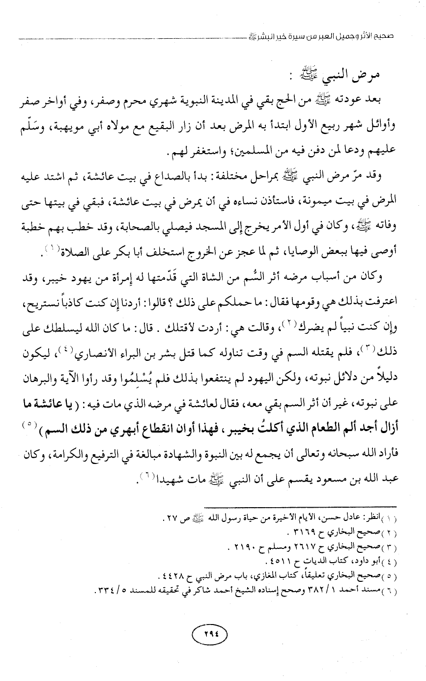 (¬5) صحيح البخاري تعليقًا، كتاب المغازي، باب مرض النبي ح 4428.
