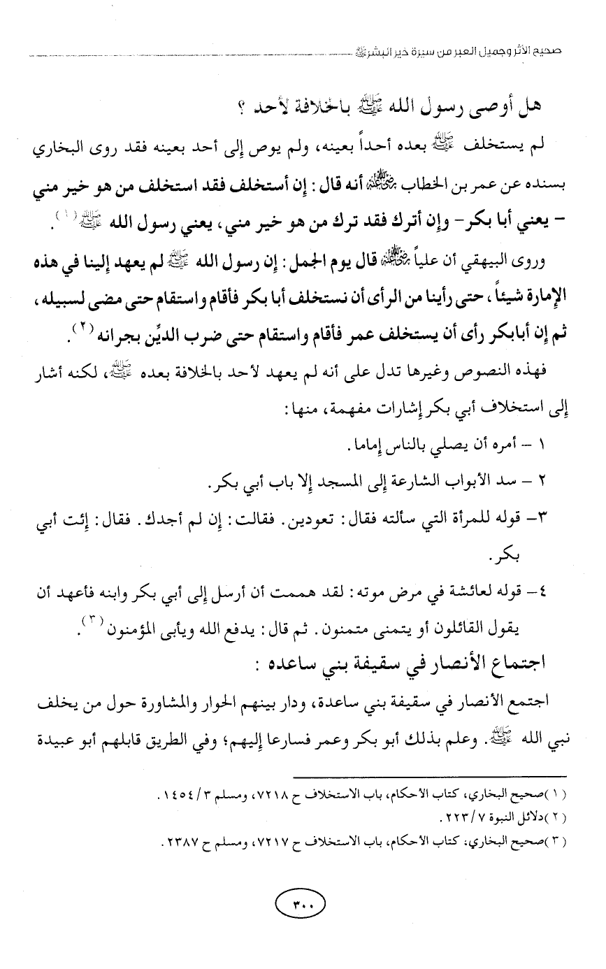 (¬3) صحيح البخاري، كتاب الأحكام، باب الاستخلاف ح 7217، ومسلم ح 2387.