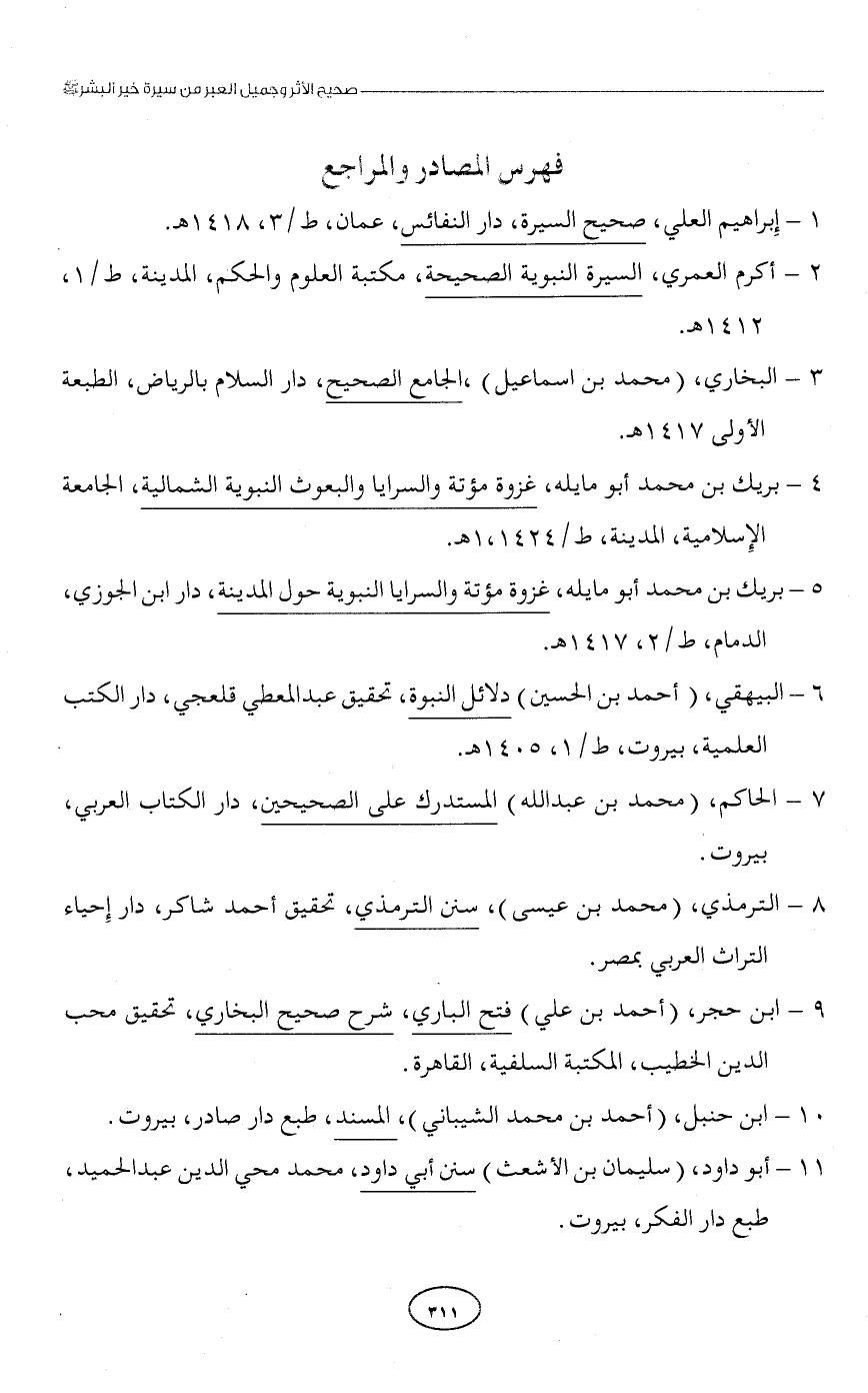 2 - أكرم العمري، السيرة النبوية الصحيحة، مكتبة العلوم والحكم، المدينة، ط/1، 1412 هـ.