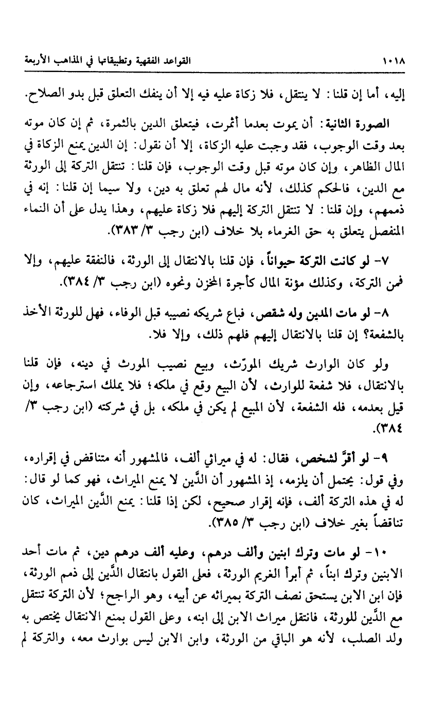 ٨ - لو مات المدين وله شقص، فباع شريكه نصيبه قبل الوفاء، فهل للورثة الأخذ بالشفعة؛ إن قلنا بالانتقال إليهم فلهم ذلك، وإلا فلا.