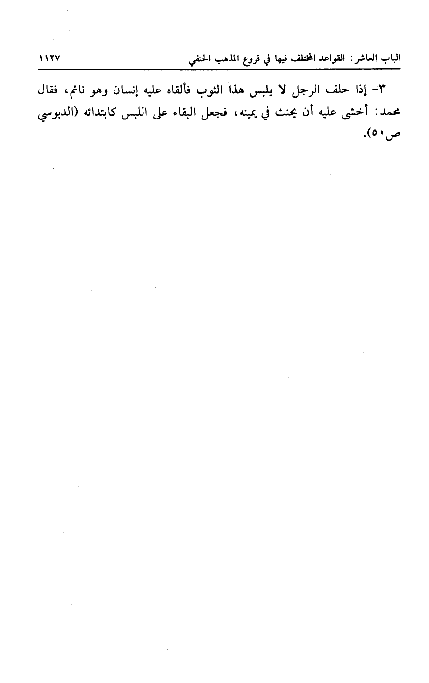 ٣ - إذا حلف الرجل لا يلبس هذا الثوب فألقاه عليه إنسان وهو نائم، فقال
