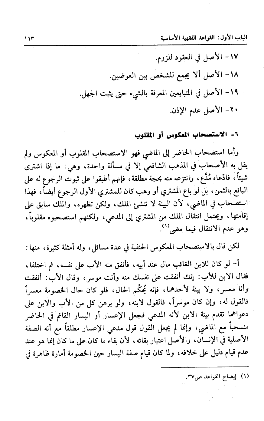 ٦ - الاستصحاب المعكوس أو المقلوب