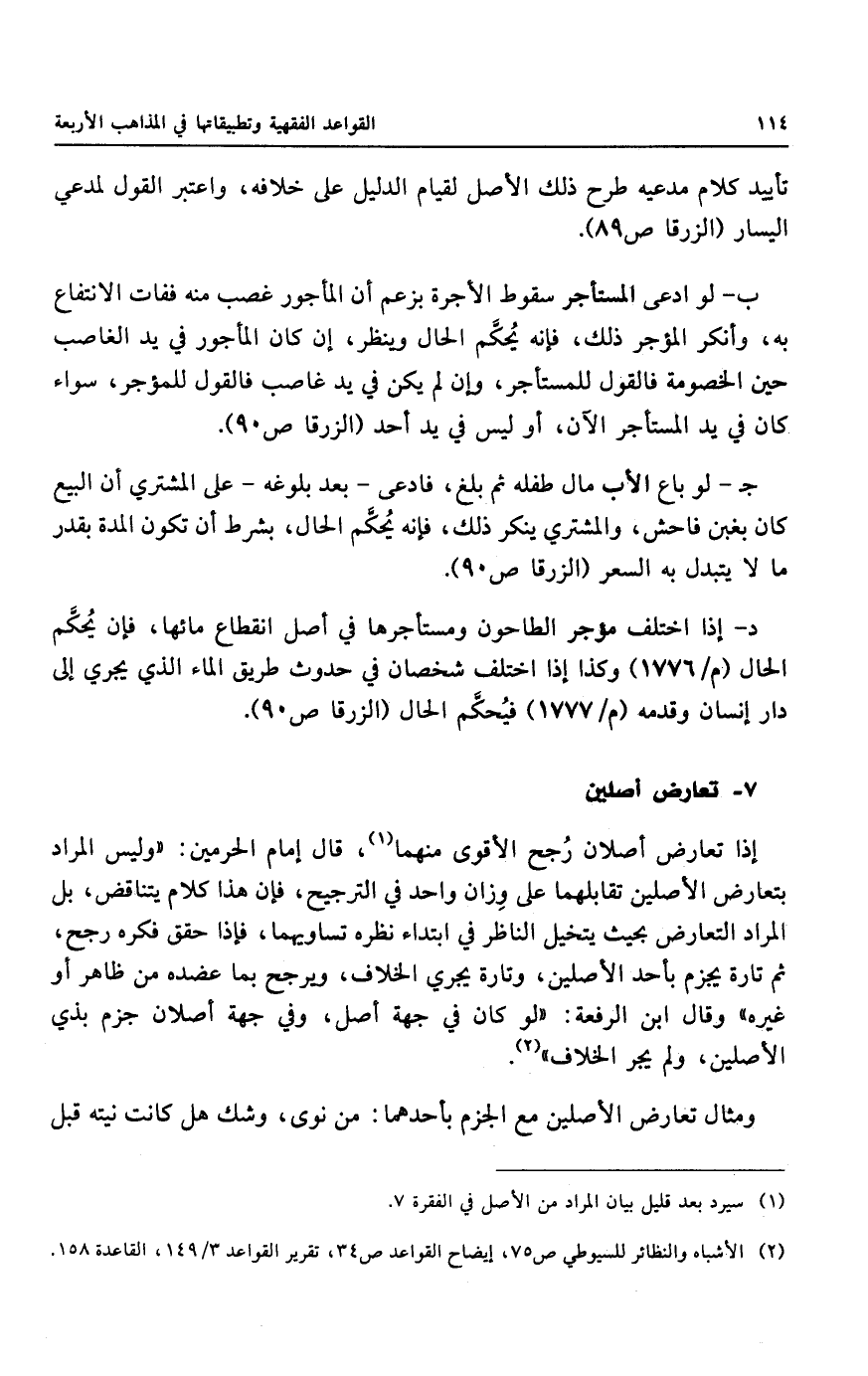 "وليس المراد بتعارض الأصلين تقابلهما على وِزان واحد في الترجيح، فإن هذا كلام يتناقض، بل المراد التعارض بحيث يتخيل الناظر في ابتداء نظره تساويهما، فإذا حقق فكره رجح.