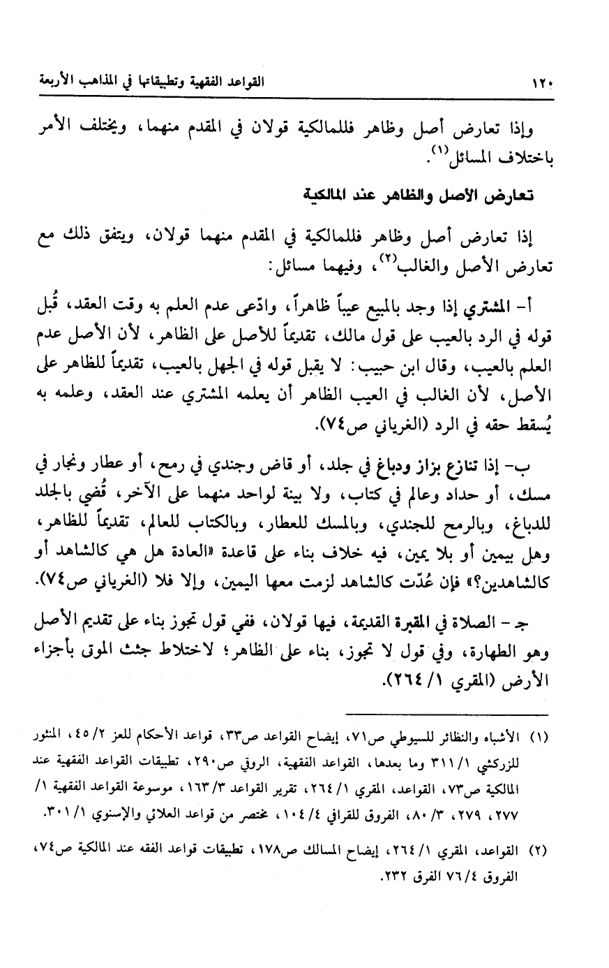 إذا تعارض أصل وظاهر فللمالكية في المقدم منهما قولان، ويتفق ذلك مع
