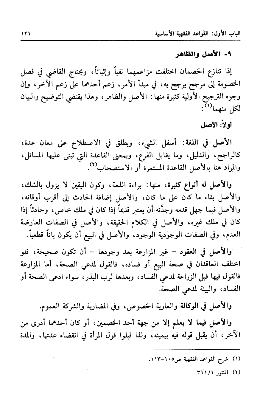 الخصومة إلى مرجح يرجح به، في مبدأ الأمر، زعم أحدهما على زعم الآخر، وإن وجوه الترجيح الأولية كثيرة منها: الأصل والظاهر، وهذا يقتضي التوضيح والبيان لكل منهما: