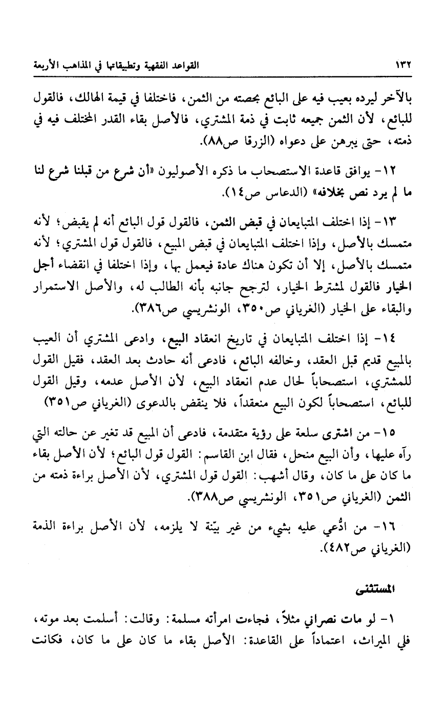 ١٢ - يوافق قاعدة الاستصحاب ما ذكره الأصوليون