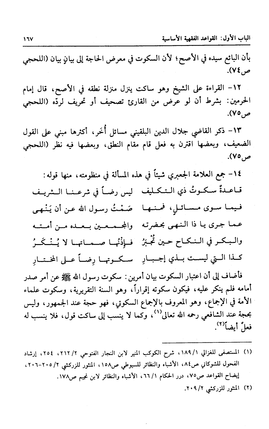 فأضاف إلى أن اعتبار السكوت بيان أمرين: سكوت رسول الله - صلى الله عليه وسلم - عن أمر صدر أمامه فلم ينكر عليه، فيكون سكوته إقراراً، وهو السنة التقريرية، وسكوت علماء الأمة في الإجماع، وهو المعروف بالإجماع السكوتي، فهو حجة عند الجمهور.