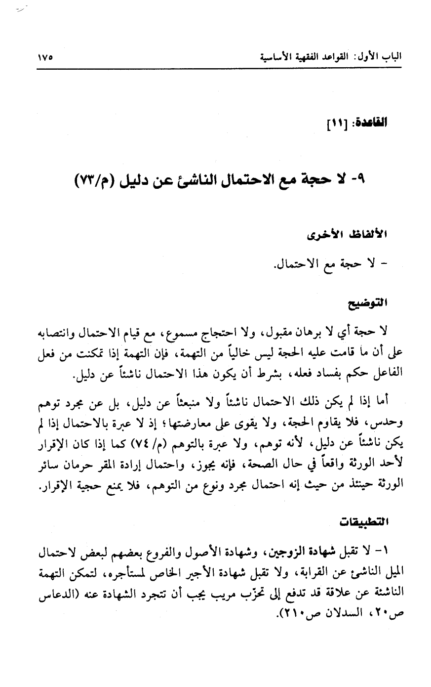 ٩ - لا حجة مع الاحتمال الناشئ عن دليل (م/٧٣)
