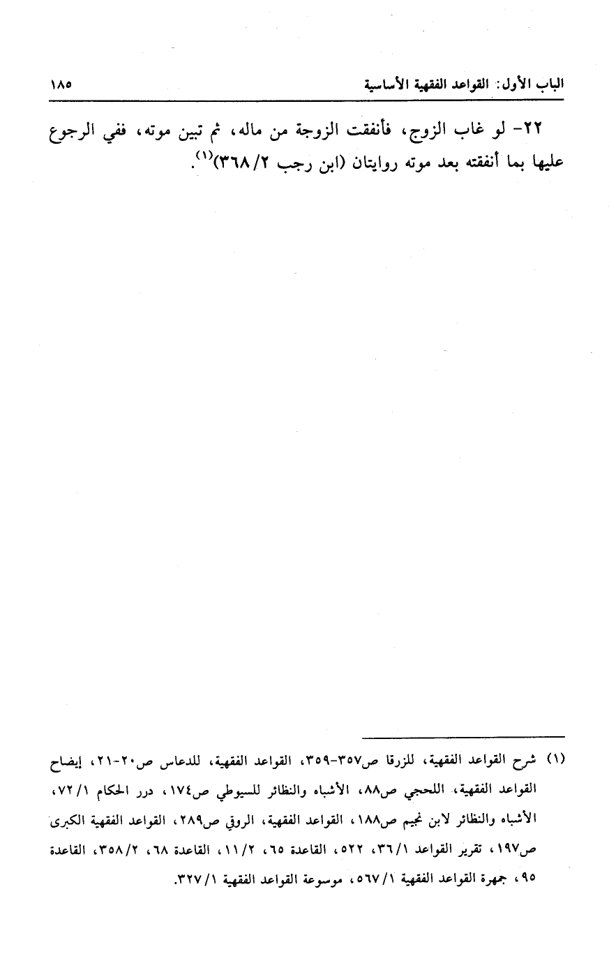 ٢٢ - لو غاب الزوج، فأنفقت الزوجة من ماله، ثم تبين موته، ففي الرجوع عليها بما أنفقته بعد موته روايتان.