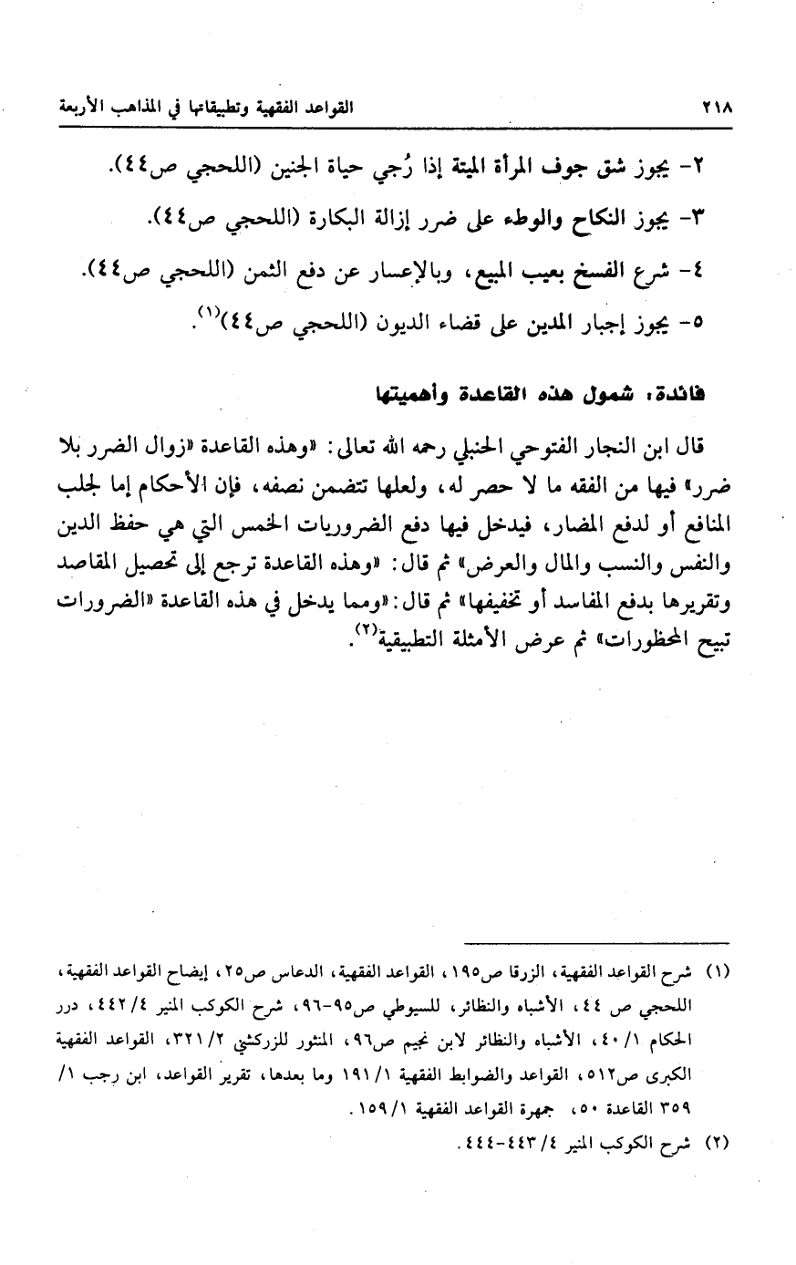 "الضرورات تبيح المحظورات " ثم عرض الأمثلة التطبيقية.