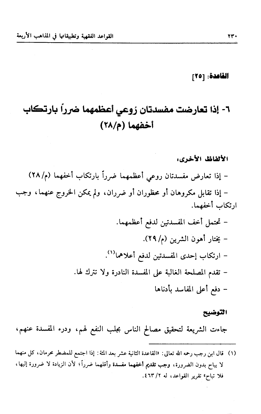 - ارتكاب إحدى المفسدتين لدفع أعلاهما (١) .