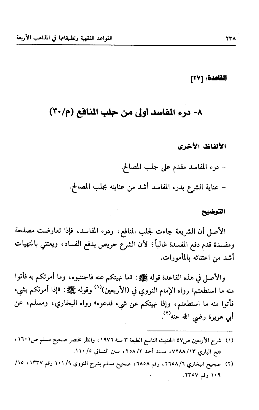 - درء المفاسد مقدم على جلب المصالح.