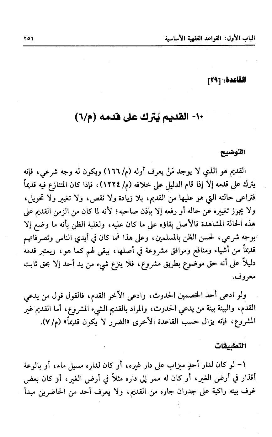 ١٠ - القديم يُترك على قدمه (م/٦)