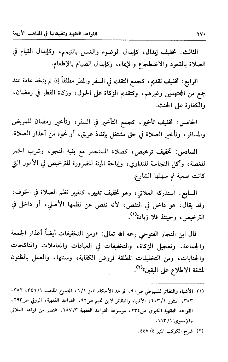 "ومن التخفيفات أيضاً أعذار الجمعة والجماعة، وتعجيل الزكاة، والتخفيفات في العبادات والمعاملات والمناكحات