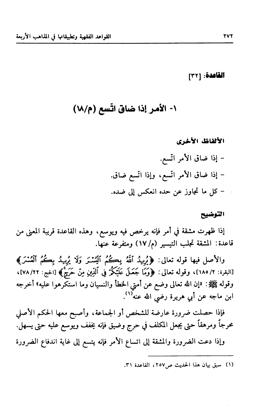 ١ - الأمر إذا ضاق اتَّسع (م/ ما)