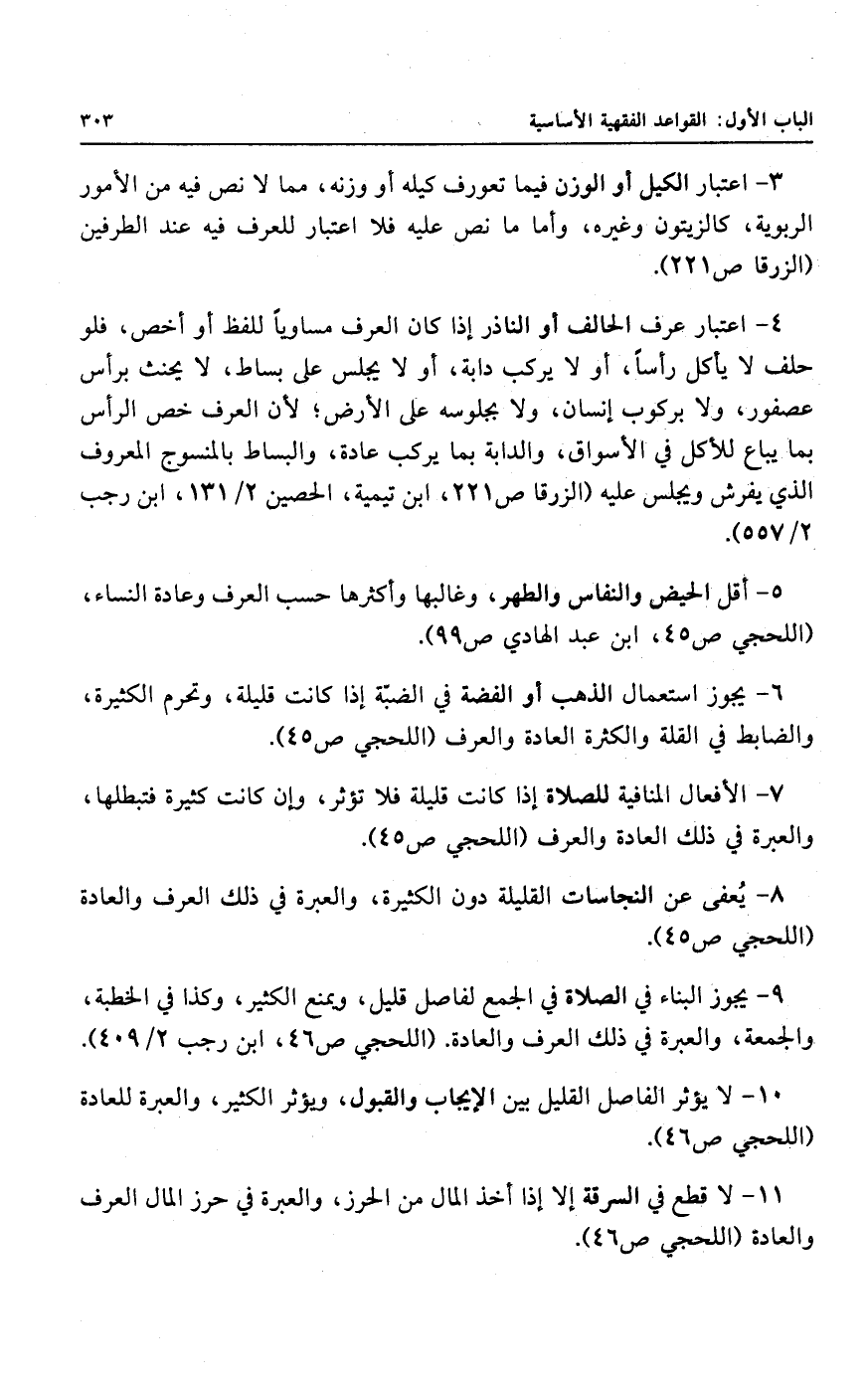 ٣ - اعتبار الكيل أو الوزن فيما تعورف كيله أو وزنه، مما لا نص فيه من الأمور الربوية، كالزيتون وغيره، وأما ما نص عليه فلا اعتبار للعرف فيه عند الطرفين.