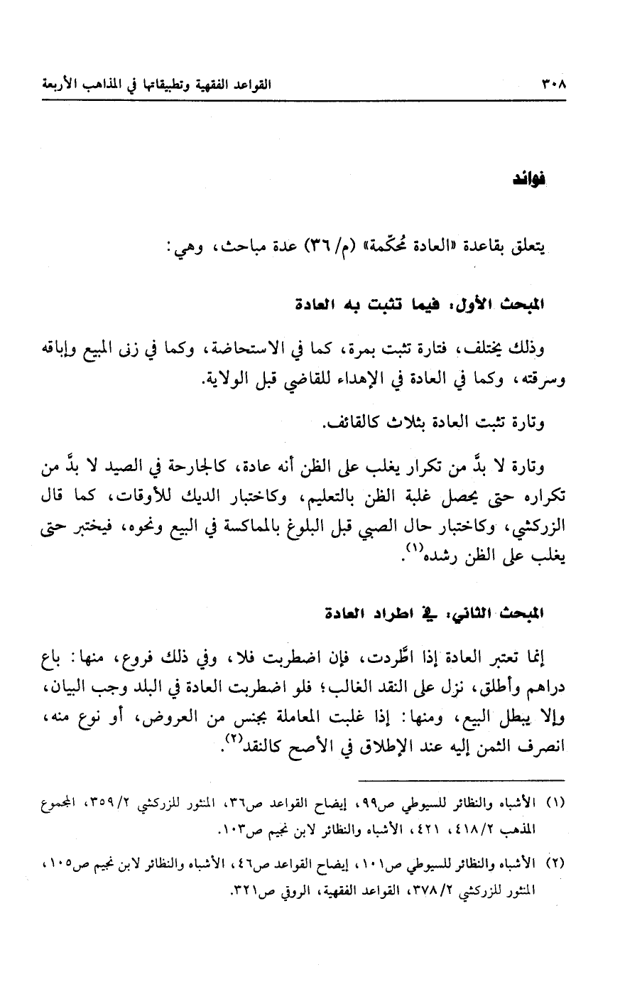 يتعلق بقاعدة "العادة مُحكَّمة) (م/ ٣٦) عدة مباحث، وهي: