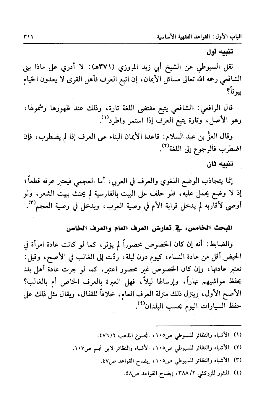 وقال العزُّ بن عبد السلام: قاعدة الأيمان البناء على العرف إذا لم يضطرب، فإن اضطرب فالرجوع إلى اللغة.