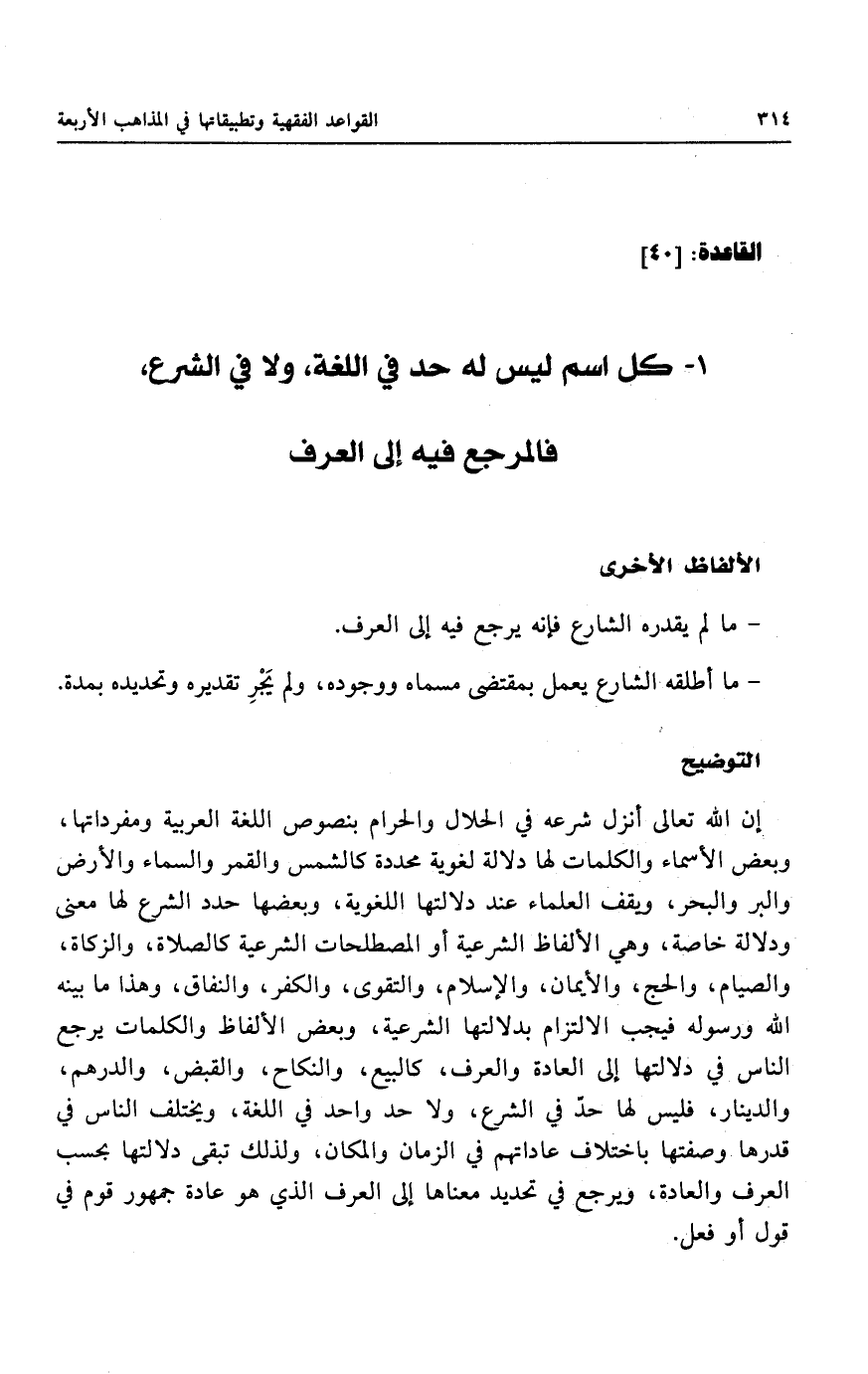 ١ - كل اسم ليس له حد في اللغة، ولا في الشرع، فالمرجع فيه إلى العرف