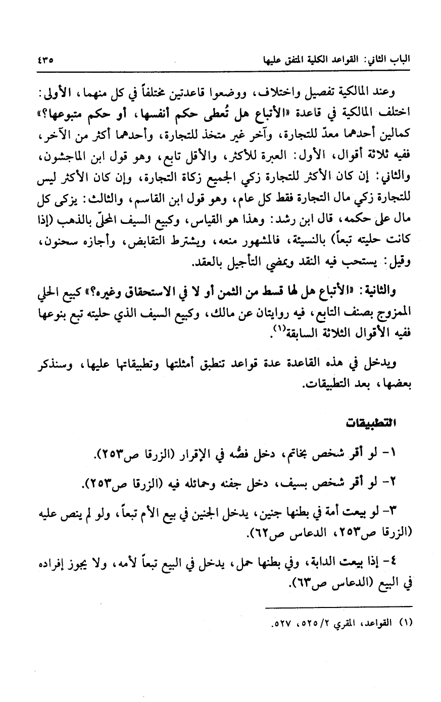 ويدخل في هذه القاعدة عدة قواعد تنطبق أمثلتها وتطبيقاتها عليها.