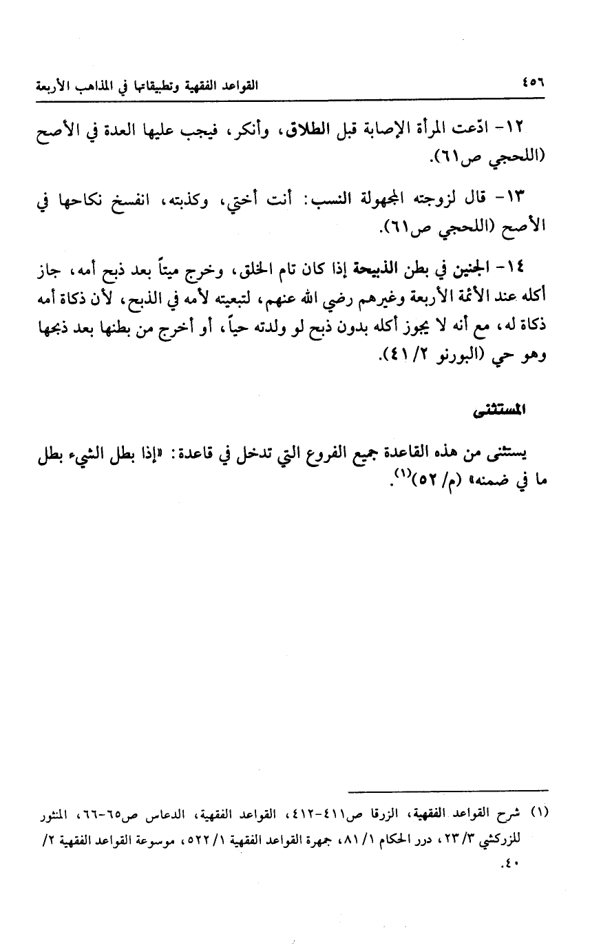 يستثنى من هذه القاعدة جميع الفروع التي تدخل في قاعدة: