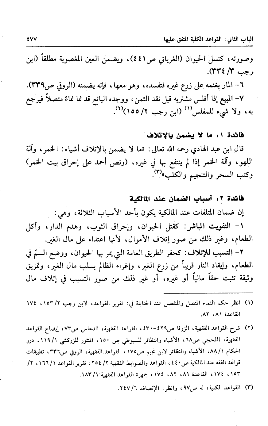 إن ضمان المتلفات عند المالكية يكون بأحد الأسباب الثلاثة، وهي: