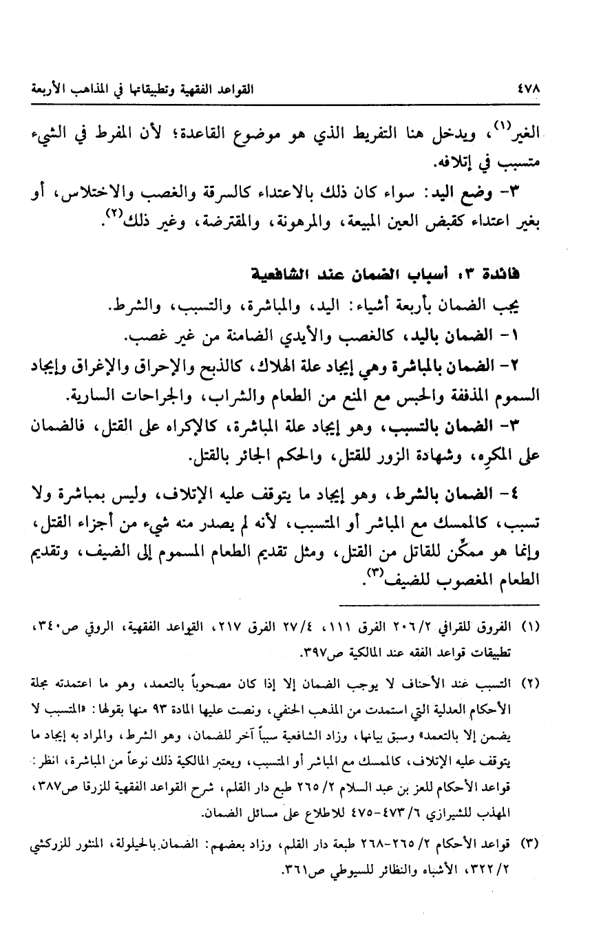 فائدة ٣: أسباب الضمان عند الشافعية