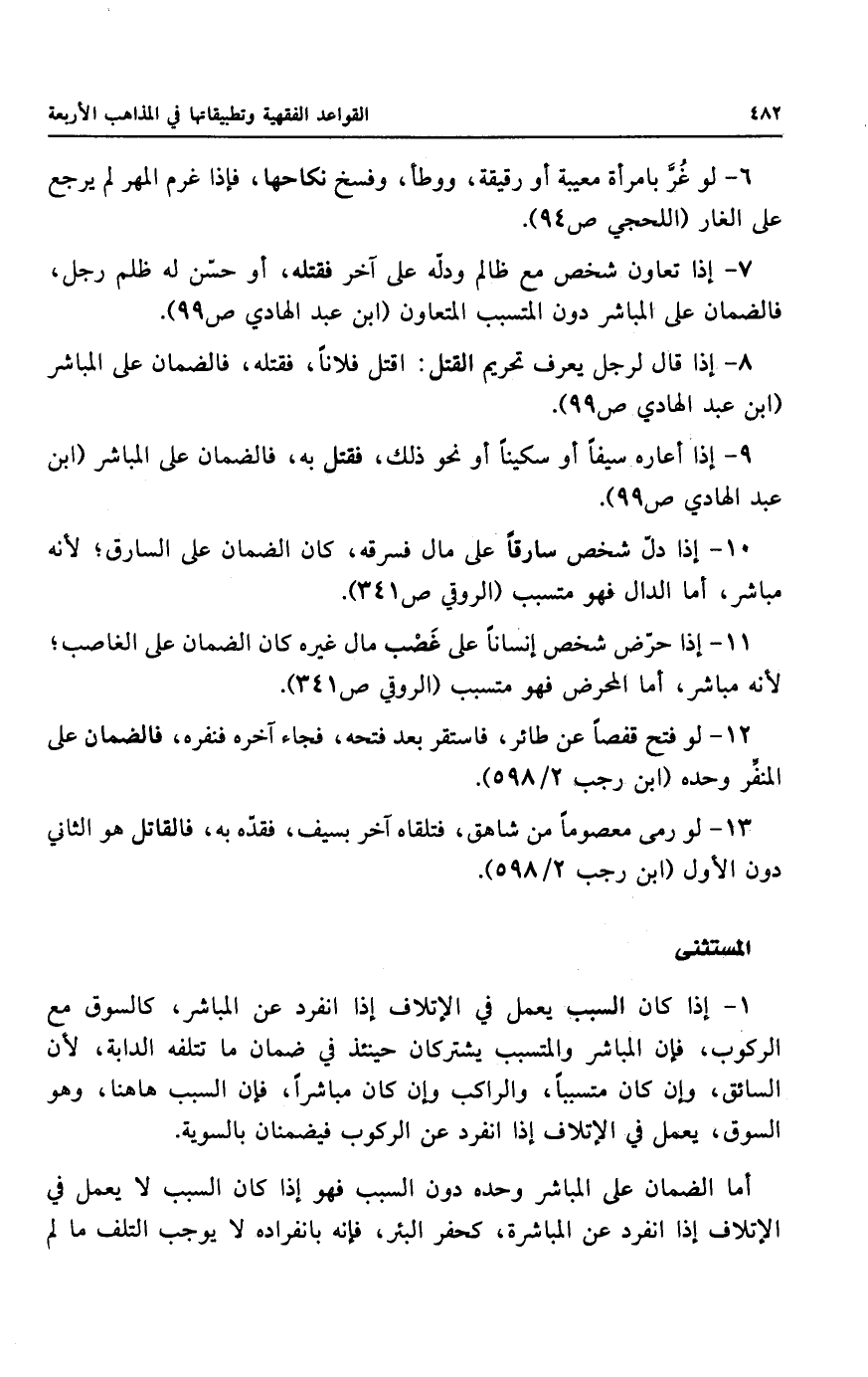١١ - إذا حرّض شخص إنساناً على غَصْب مال غيره كان الضمان على الغاصب؛ لأنه مباشر، أما المحرض فهو متسبب.