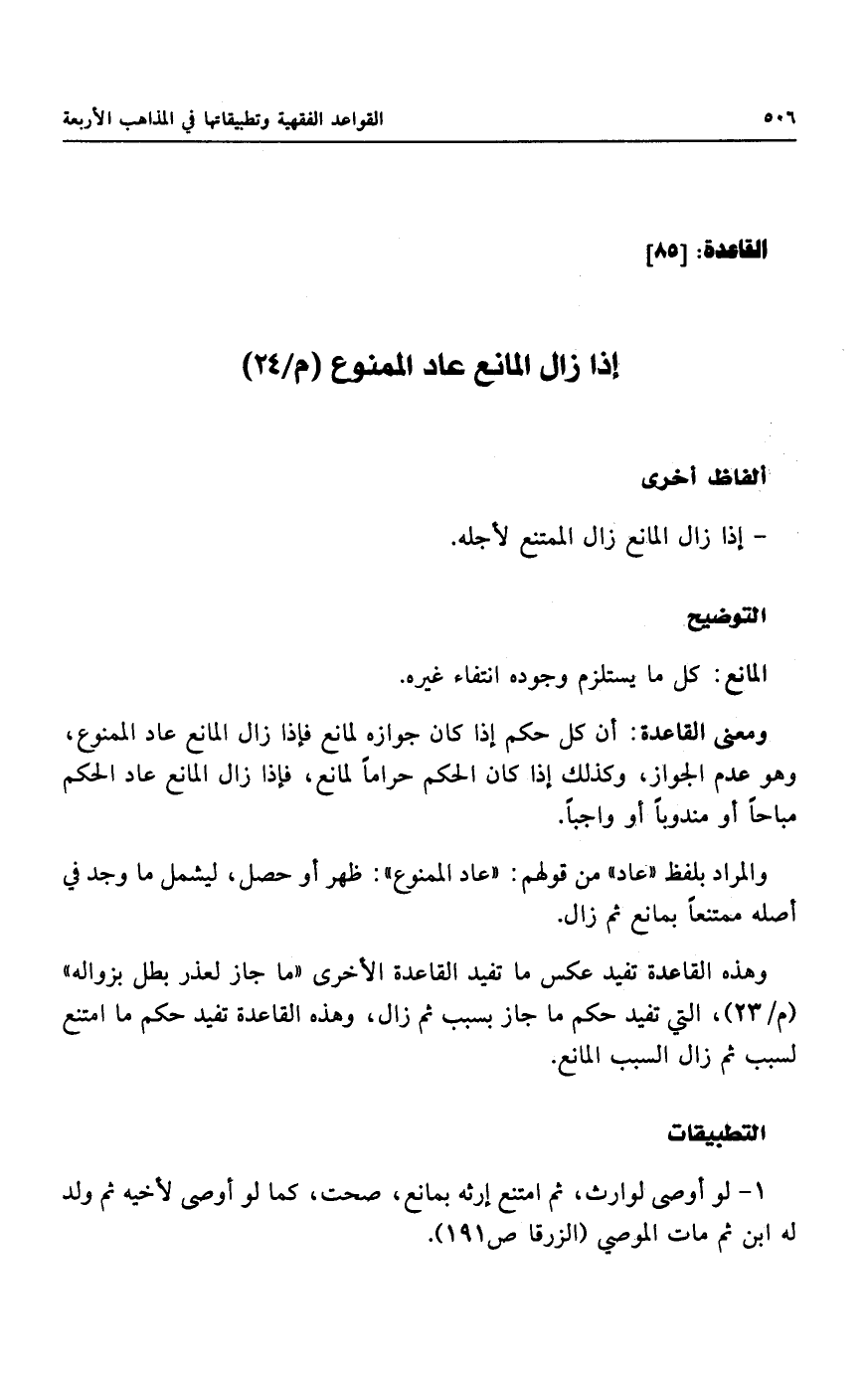 إذا زال المانع عاد الممنوع (م/٢٤)