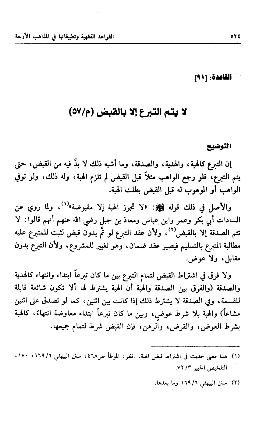 لا يتم التبرع إلا بالقبض (م/٥٧)