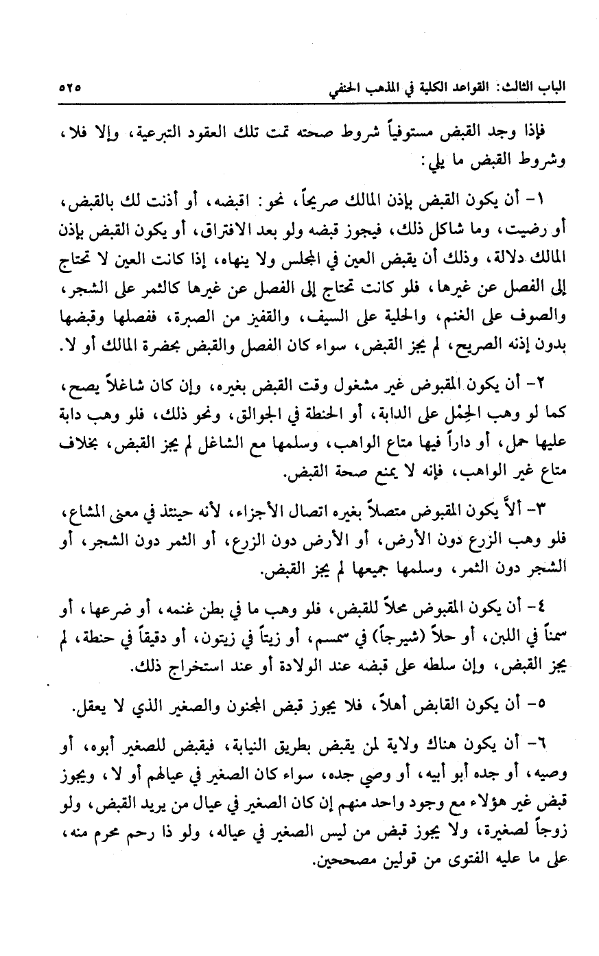 ٥ - أن يكون القابض أهلاً، فلا يجوز قبض المجنون والصغير الذي لا يعقل.