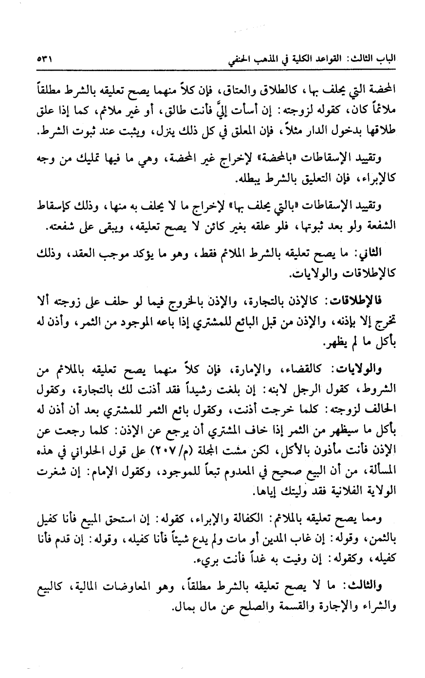 الثاني: ما يصح تعليقه بالشرط الملائم فقط، وهو ما يؤكد موجب العقد، وذلك كالإطلاقات والولايات.