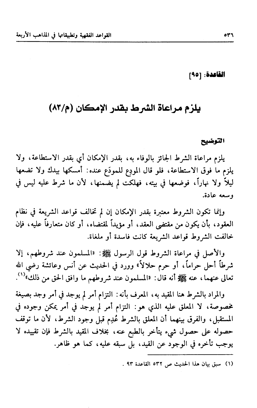 يلزم مراعاة الشرط بقدر الإمكان (م/٨٣)
