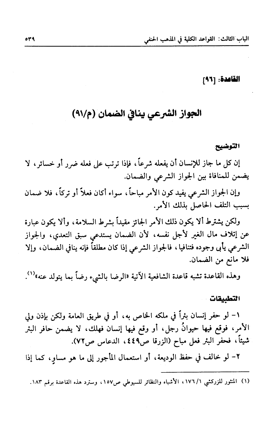 الجواز الشرعي ينافي الضمان (م/٩١)