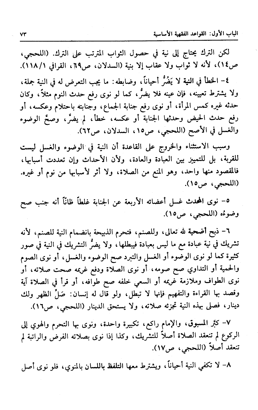 (السدلان، ص ٦٩) القرافي ١١٨/١) .