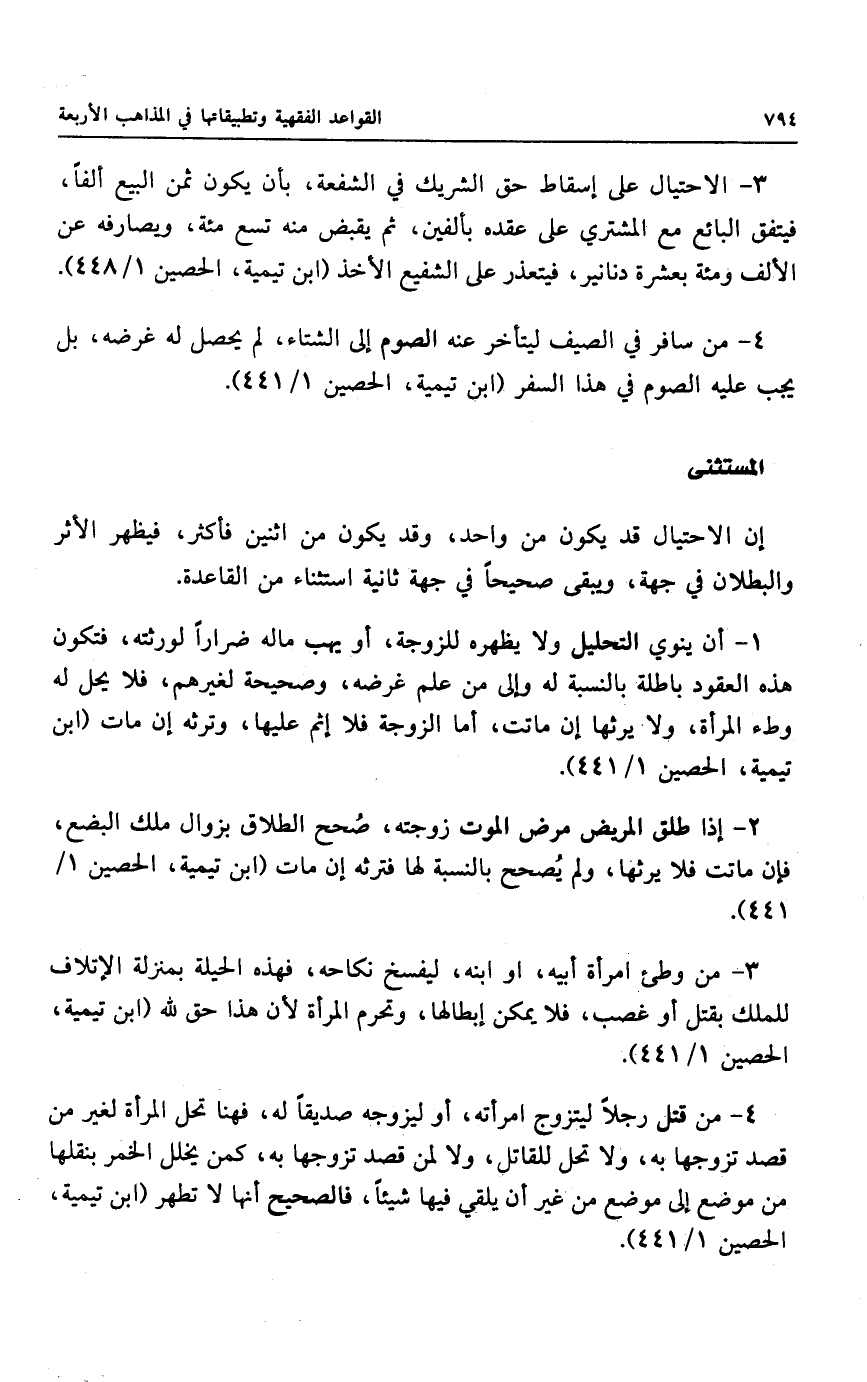(ابن تيمية، الحصين ١/ ٤٤١) .