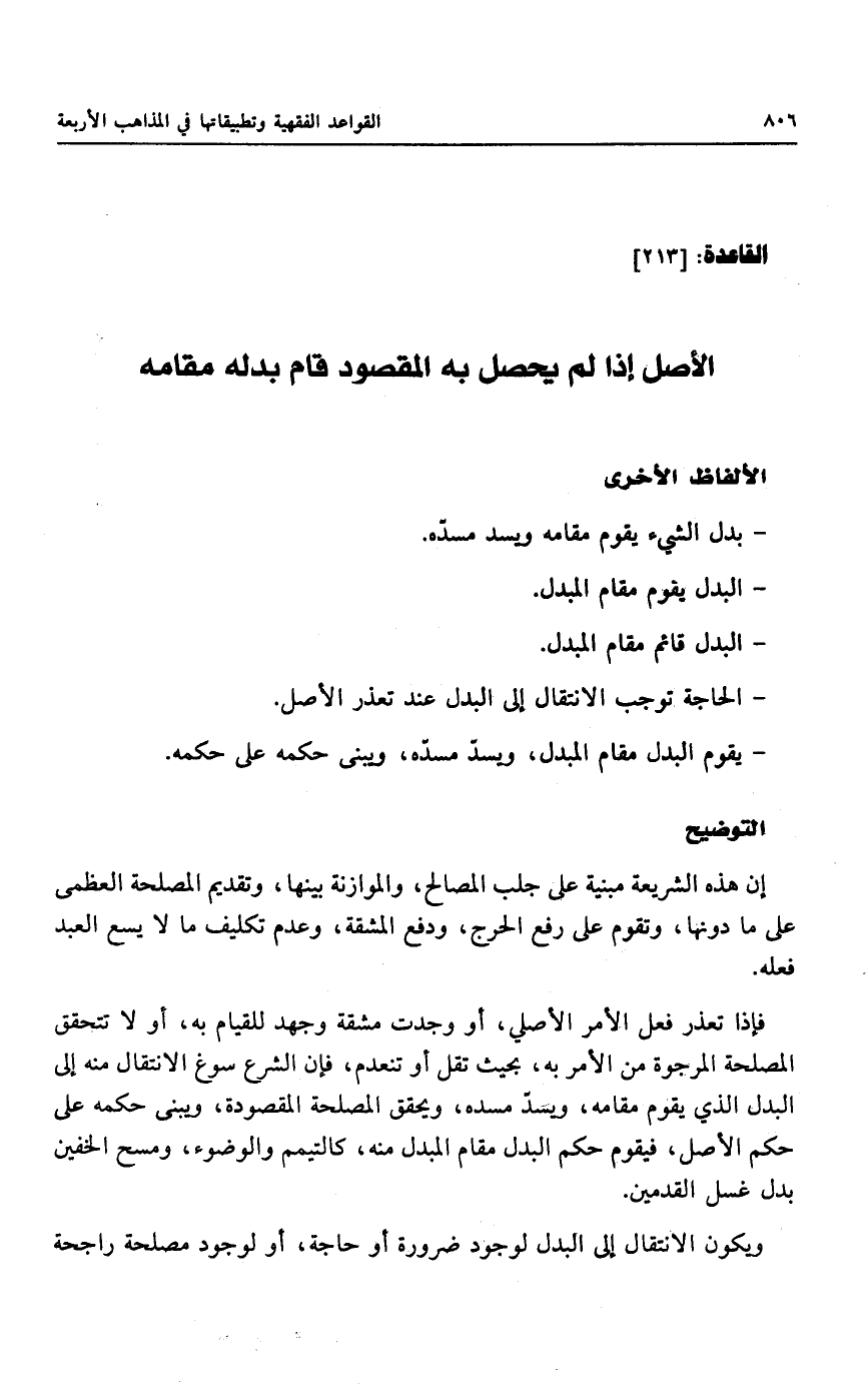 - يقوم البدل مقام المبدل، ويس مسدَّه، ويبنى حكمه على حكمه.