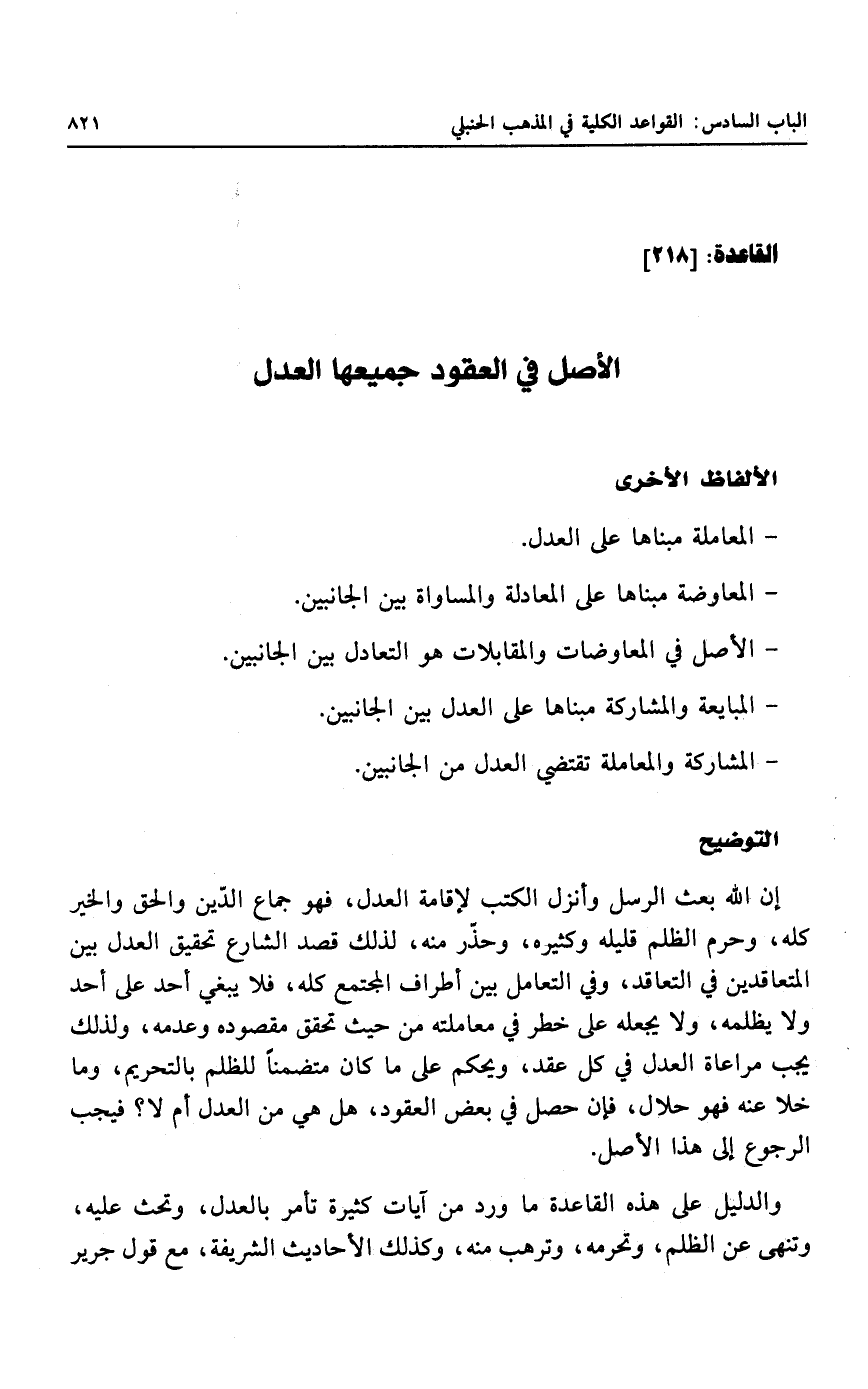 إن الله بعث الرسل وأنزل الكتب لإقامة العدل، فهو جماع الذين والحق والخير كله، وحرم الظلم قليله وكثيره، وحذر منه، لذلك قصد الشارع تحقيق العدل بين المتعاقدين في التعاقد، وفي التعامل بين أطراف المجتمع كله، فلا يبغي أحد على أحد ولا يظلمه، ولا يجعله على خطر في معاملته من حيث تحقق مقصوده وعدمه، ولذلك يجب مراعاة العدل في كل عقد، ويحكم على ما كان متضمناً للظلم بالتحريم، وما خلا عنه فهو حلال، فإن حصل في بعض العقود، هل هي من العدل أم لا؟