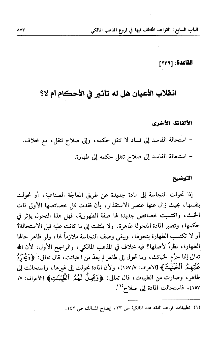 - استحالة الفاسد إلى صلاح تنقل حكمه إلى طهارة.