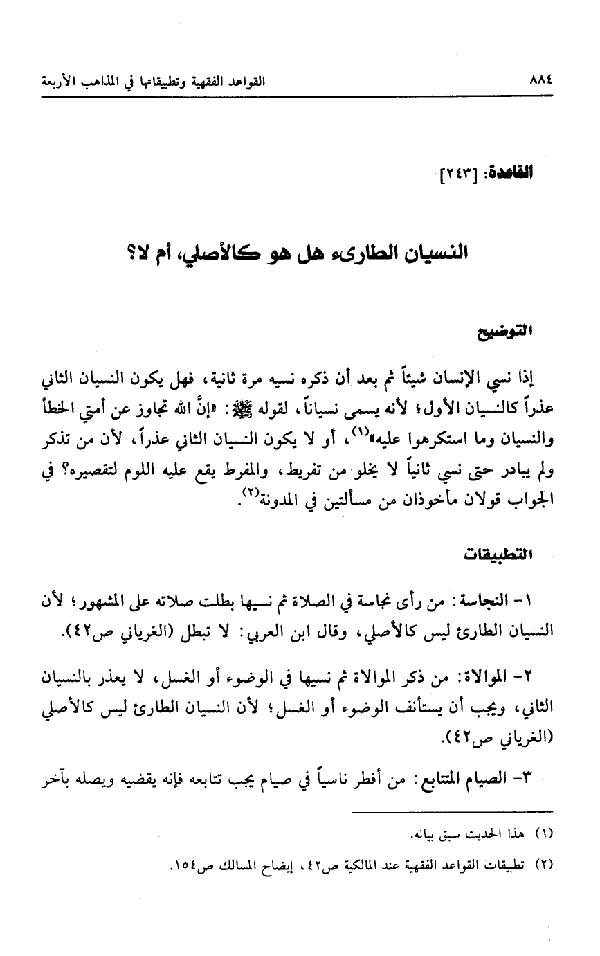 النسيان الطارئ هل هو كالأصلى، أم لا؟