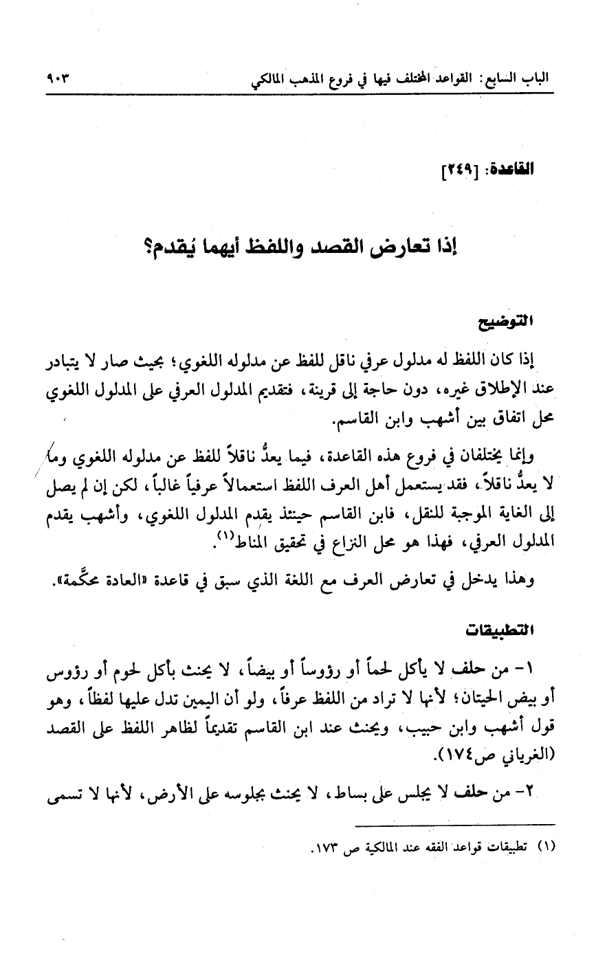 وإنما يختلفان في فروع هذه القاعدة، فيما يعدُّ ناقلاً للفظ عن مدلوله اللغوي وما لا يعدُّ ناقلاً، فقد يستعمل أهل العرف اللفظ استعمالاً عرفياً غالباً، لكن إن لم يصل إلى الغاية الموجبة للنقل، فابن القاسم حينئذ يقدم المدلول اللغوي، وأشهب يقدم المدلول العرفي، فهذا هو محل النزاع في تحقيق المناط.
