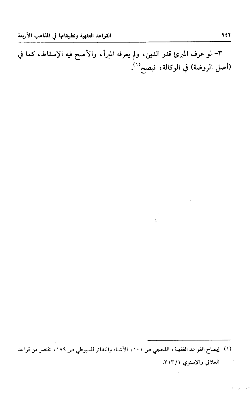 ٣ - لو عرف المبرئ قدر الدين، ولم يعرفه المبرأ، والأصح فيه الإسقاط، كما في (أصل الروضة) في الوكالة، فيصح.